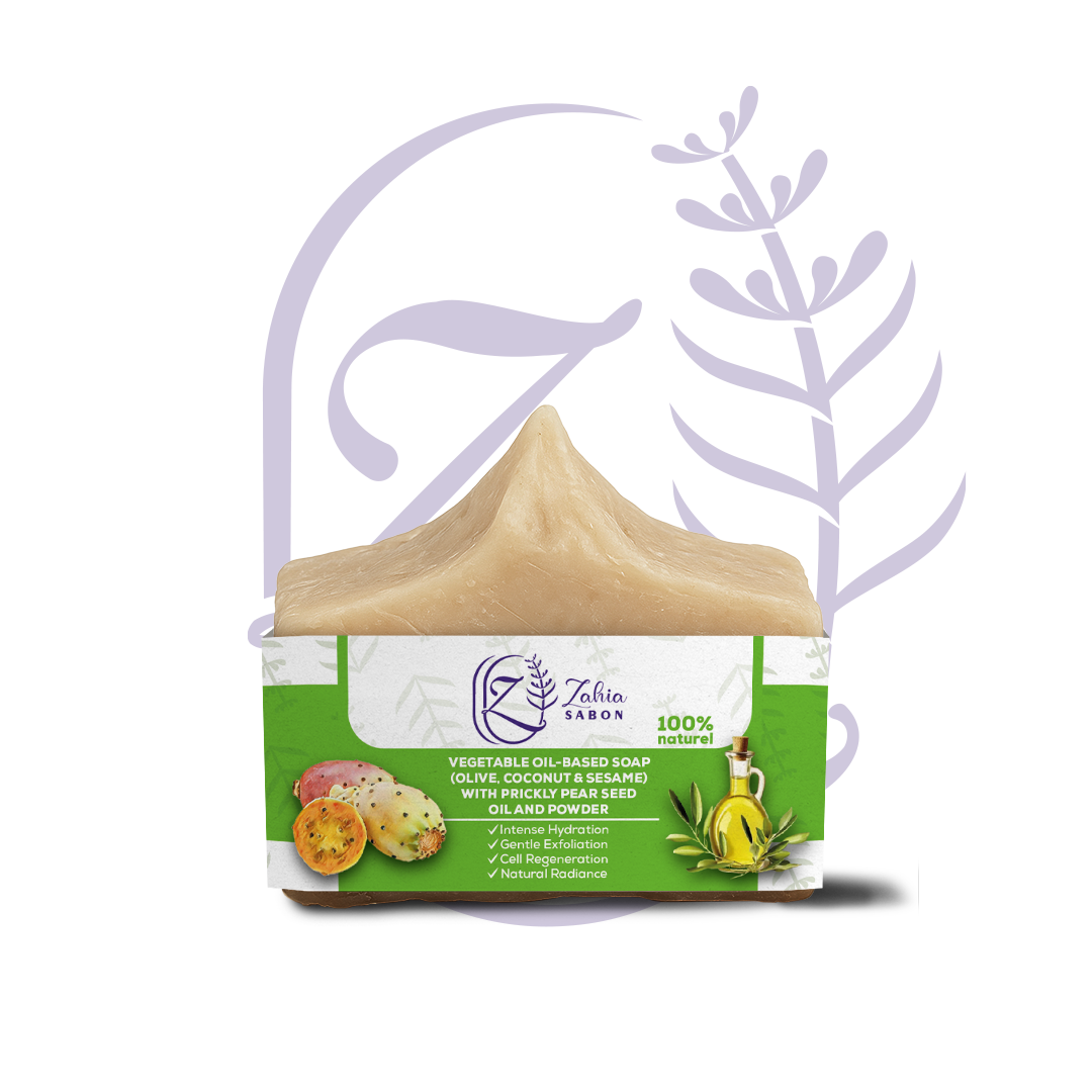 🧼 صابون نباتي بزيت ومسحوق بذور التين الشوكي 🔹